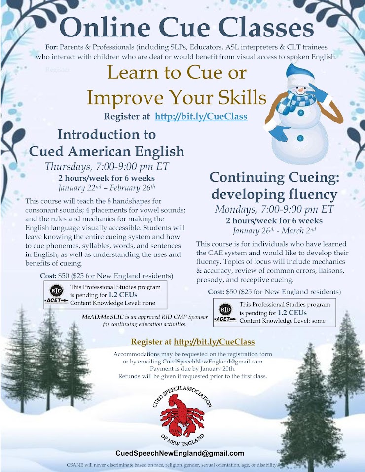 Cued Speech Association of New England: Spring Classes (Virtual)
